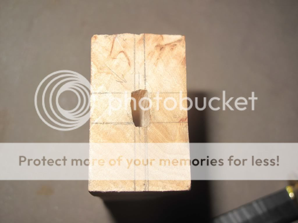 Next its time to mark out on the wood where you want the hole use the tang to mark out on the side the size of the hole needed then mark on the top of the wood and drill the holes needed. A tip i recommend is to mark the drill bit with the depth needed i made the mistake of not doing this and went too far and needed to get more wood.